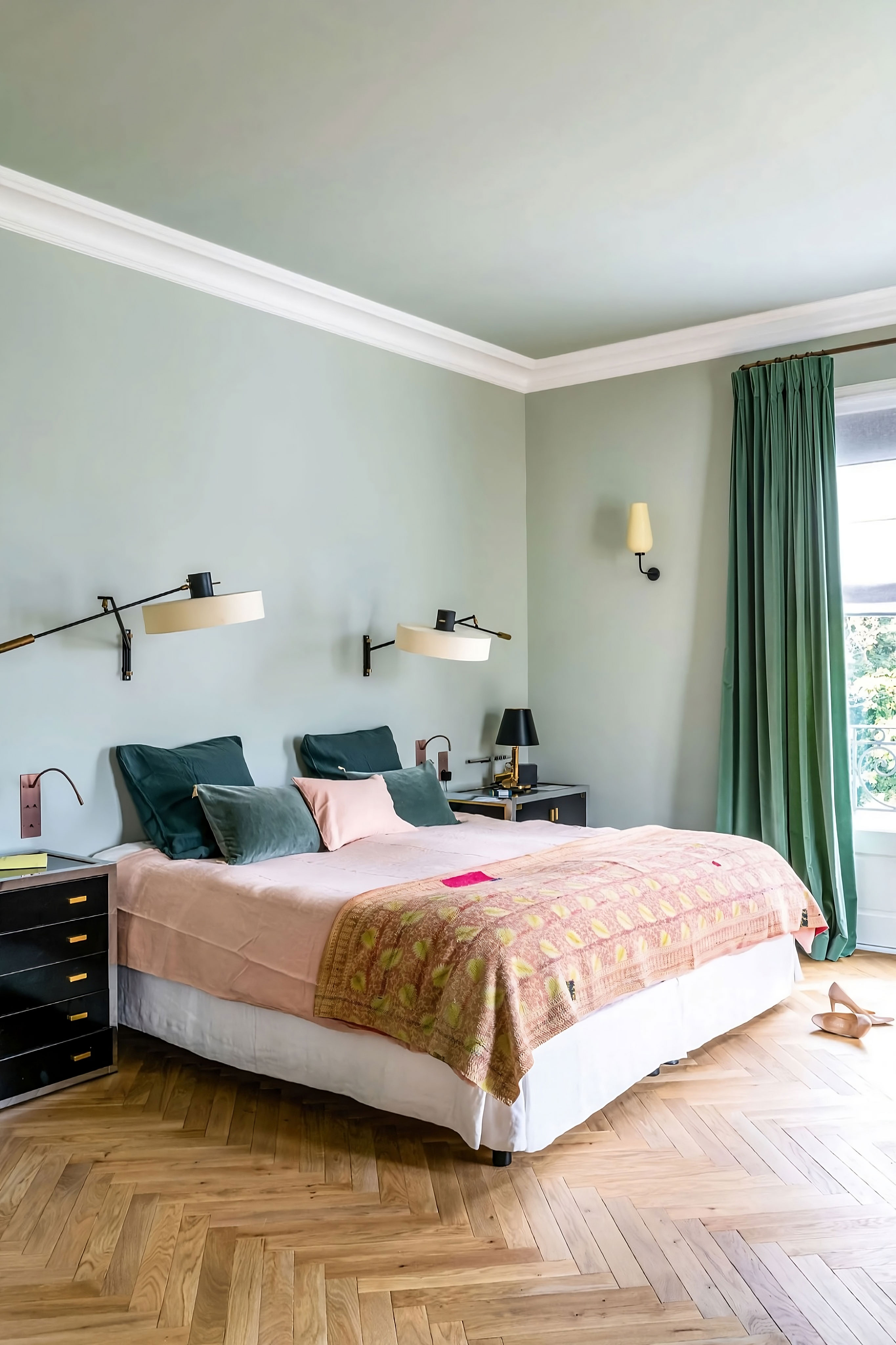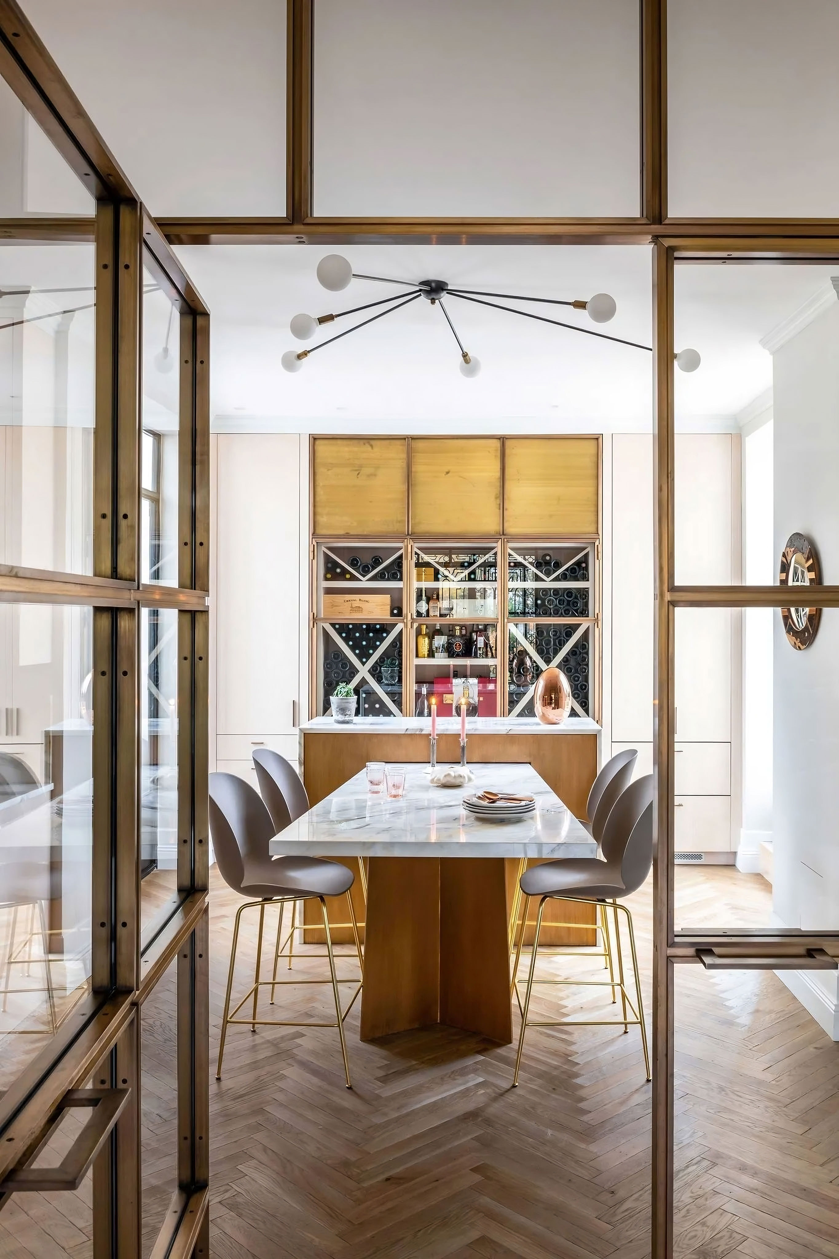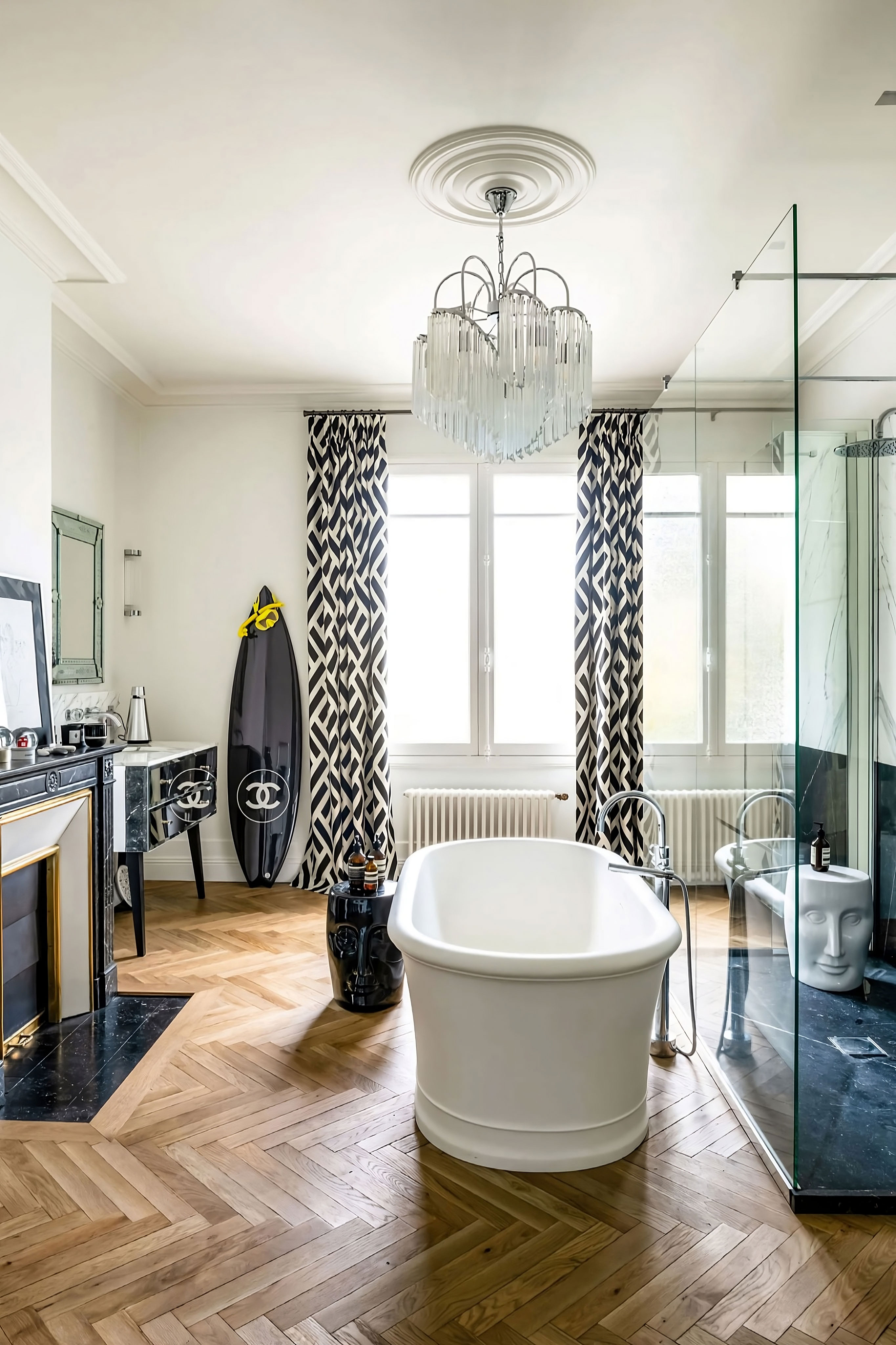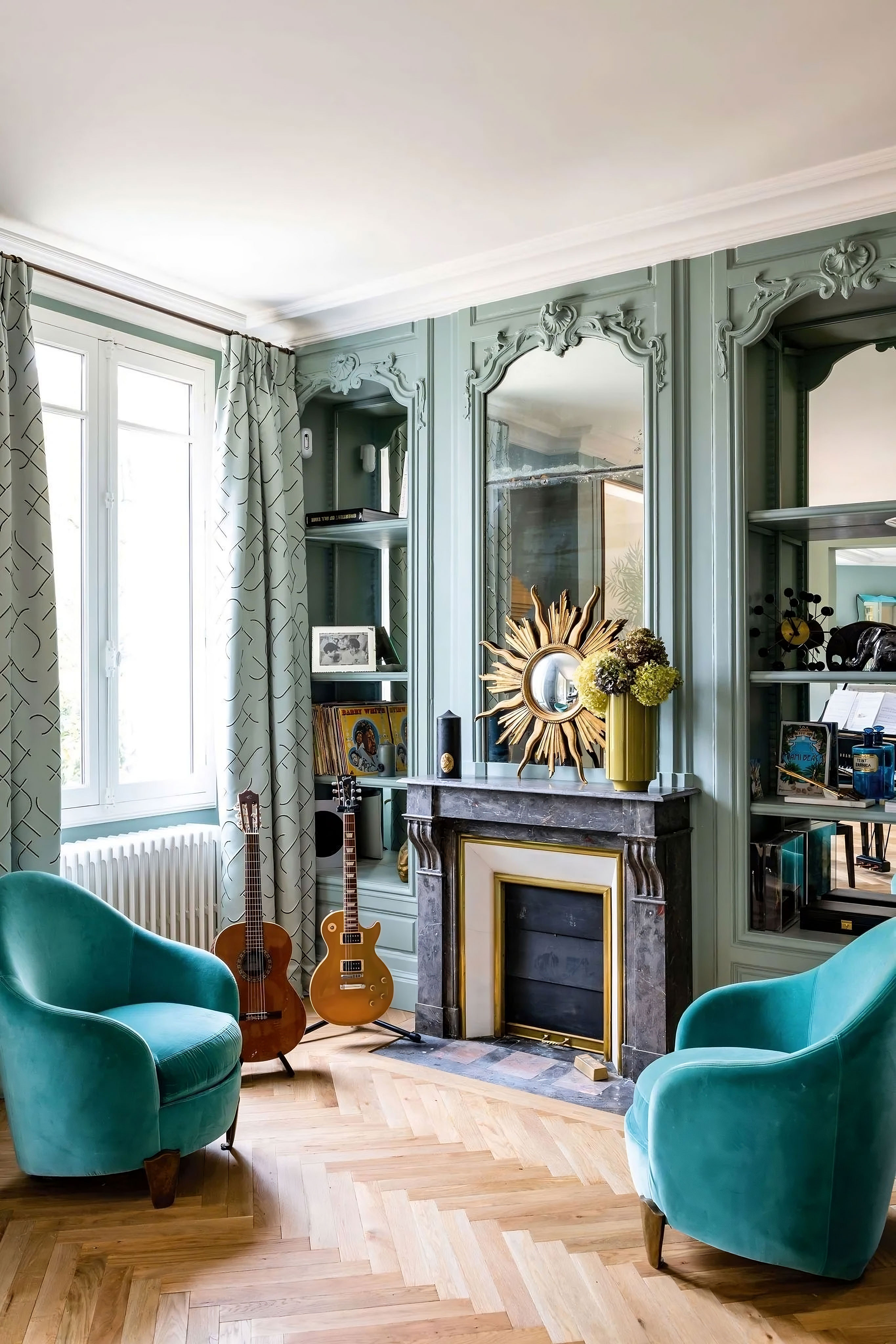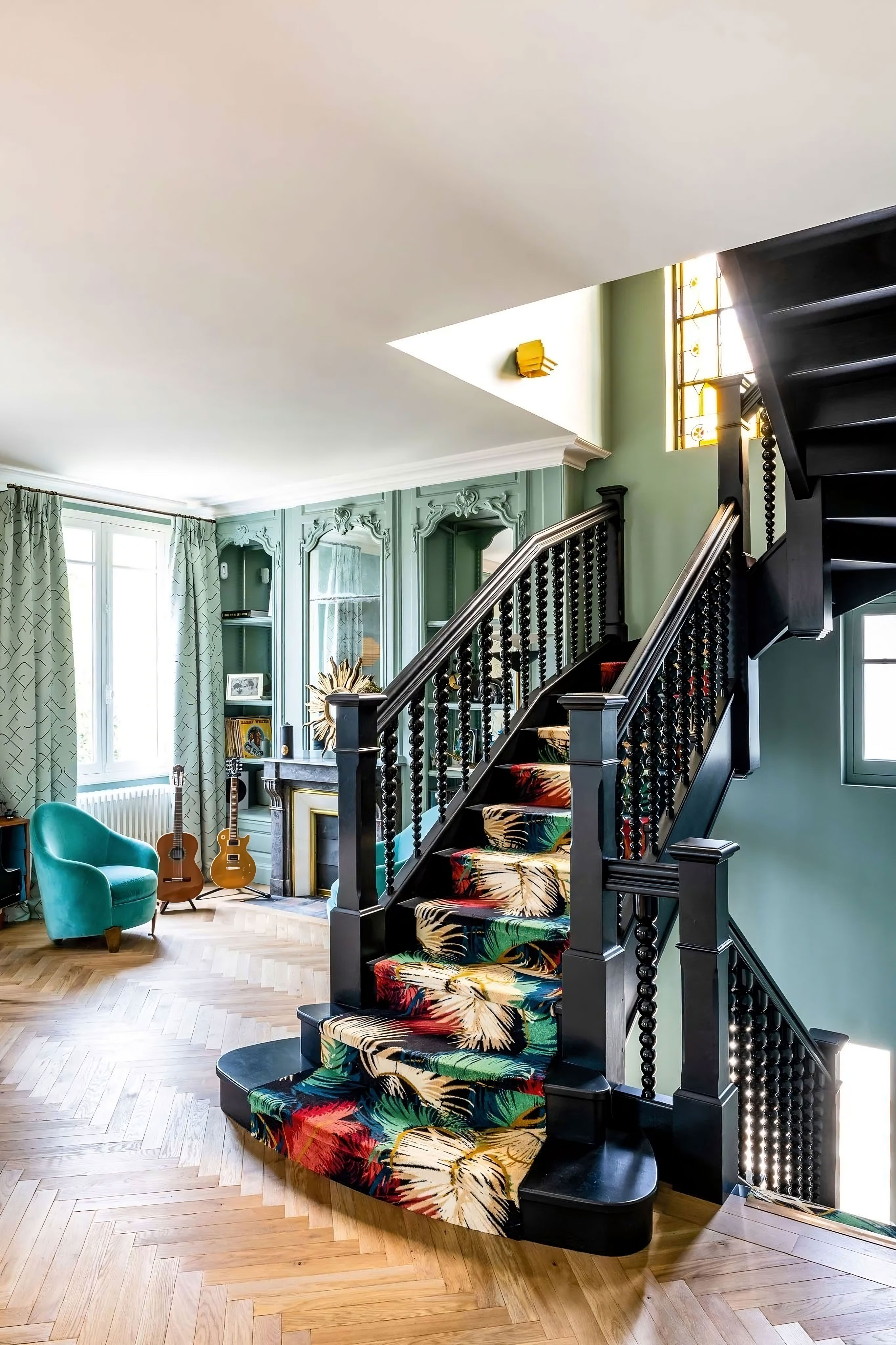 Pour ce projet d'aménagement de mobilier sur mesure d'un hôtel particulier des années 30 de Bordeaux, la décoratrice Nicole Joinau a mené une restauration minutieuse avec l'aide d'artisans d'art pour redonner vie à cette magnifique propriété. Le propriétaire, qui avait déjà collaboré avec Nicole Joinau pour la restauration de précédentes maisons, souligne le soin apporté aux détails. Les éléments d'époque les plus intéressants ont été conservés, tels que la porte d'entrée, le vitrail de l'escalier, les cheminées et les boiseries du salon. Les pièces de designers et les matières nobles ont été utilisées pour créer une ambiance intime teintée de féerie. Le mobilier sur mesure, y compris la cuisine, le salon, les dressings et les salles de douche, a été réalisé par nos soins. La ferronnerie a été conçue par Julien Castilla-Madrigal, qui a accompli un travail remarquable sur les portes de la cuisine et de la cave à vin. Le résultat est une partition bien orchestrée qui met en avant la vision artistique de Nicole Joinau.